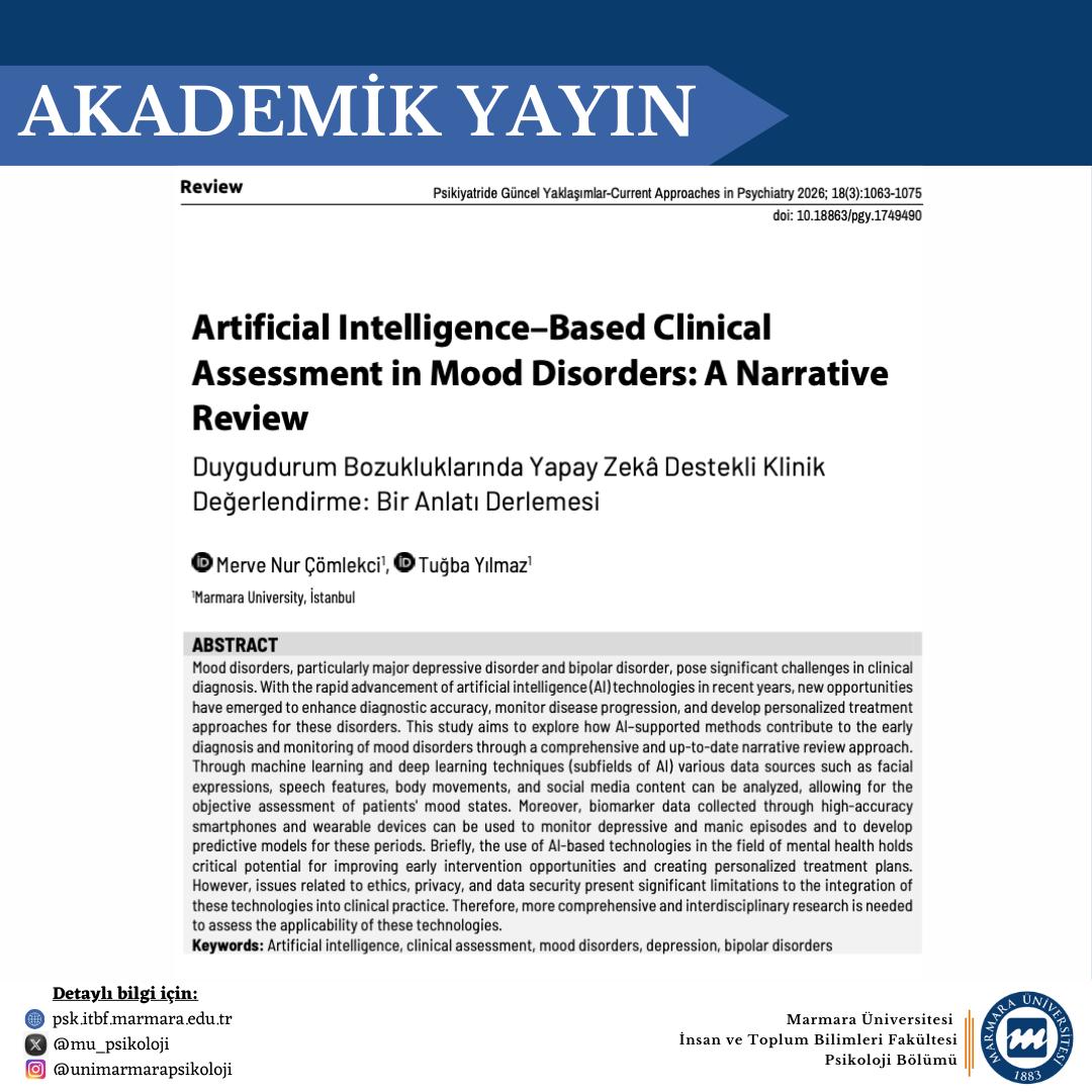 Bölümümüz akademisyenlerinden Arş. Gör. Merve Nur Çömlekci ve Doç. Dr. Tuğba Yılmaz’ın yürüttüğü derleme Psikiyatride Güncel Yaklaşımlar dergisinde yayımlandı.